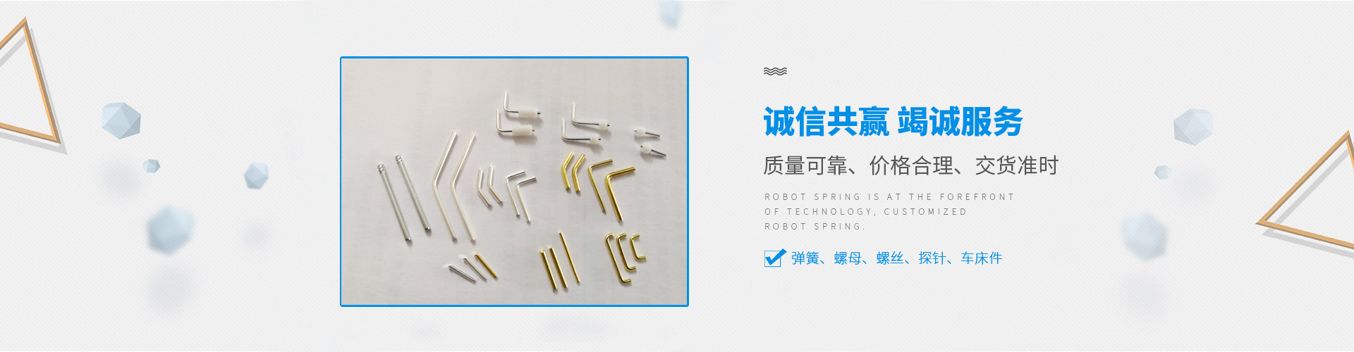 深圳裕聯(lián)興五金制品有限公司主要經(jīng)營生產(chǎn):彈簧、螺母、螺絲、探針、車床件等產(chǎn)品,我們擁有十幾年生產(chǎn)經(jīng)驗,公司致力于做一家:“一諾千金、誠信立業(yè)、胸懷廣闊、追求卓越”有社會責(zé)任感的企業(yè)。
